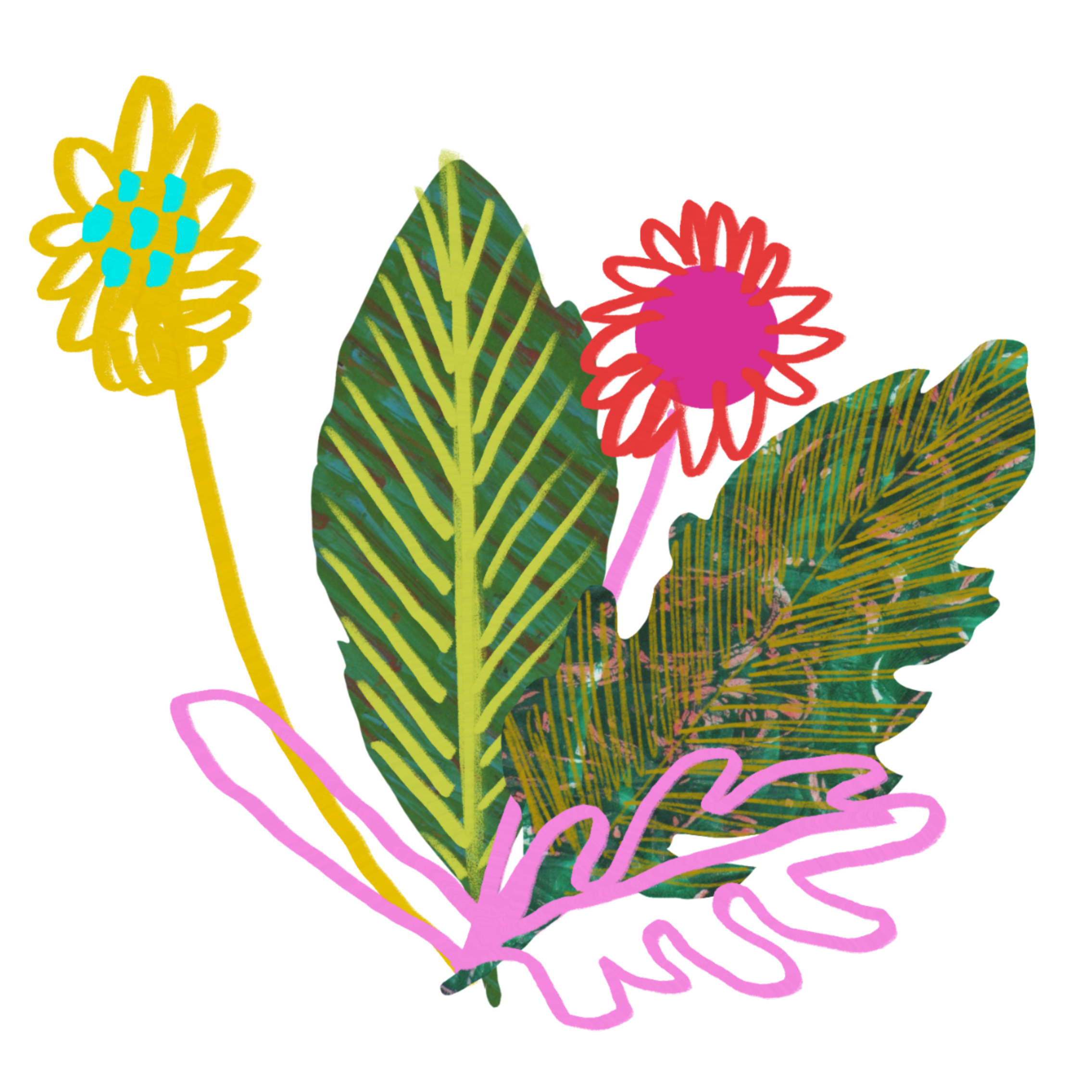 Fast forward to now and I’m a freelance artist and illustrator with work ranging from illustrated prints, menu designs, brand designs, murals, window paintings and greeting cards. I also love creating personalised commissions for all of you! I work by hand with collage and paint, digitally on my iPad, or I combine both. My work embodies bold colours, interesting textures, and printing techniques inspired by my surroundings to craft pieces that are fun and eye catching!